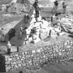 Depuis quelques semaines, plusieurs forums internet discutent de mon intervention dans un documentaire réalisé en 1991 par la chaine américaine PBS, pour la fameuse émission de vulgarisation scientifique “NOVA” intitulé: This Old Pyramid. L’objectif de NOVA était l’illustration des différentes techniques proposées par les experts dans la construction des pyramides d’Égypte. NOVA avait pour cela décidé de construire, à Guizeh, une mini-pyramide, selon les “techniques anciennes”. J’ai relaté mon expérience dans plusieurs de mes livres: Ils ont bâti les Pyramides (2002), La Nouvelle histoire des pyramides (2004 et 2006) et Why the Pharaohs built the Pyramids with Fake Stones (2010). Je la met à disposition pour la première fois sur internet, dans le fichier pdf ci-dessous qui reproduit certaines pages et figures de l’édition de 2002 “Ils ont bâti les Pyramides“. À l’arrivée de l’équipe de tournage télévisé, et de moi-même, la mini-pyramide était pratiquement terminée sur deux cotés, ceux recouverts de blocs de parement, non dressés (voir la Figure 77 dans le fichier pdf). Les ouvriers avaient utilisé des camions, chariots élévateurs et outils en acier pour leur ouvrage, le matériau étant du calcaire tendre extrait d’une carrière à Tourah, de l’autre coté du Nil. Mais, l’utilisation de ces engins de travaux publics ne fut pas montrée dans le documentaire “This Old Pyramid”. Le parement est visible de ce coté-ci, mais il est absent sur la partie arrière qui ne fut jamais terminée, comme le montre la Figure ci-dessus ainsi que la Figure 82, prise à la fin du tournage et avant la grande fête traditionnelle de fin de chantier.